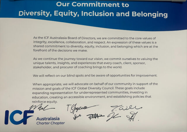 The ICF Australasia Board was proud to be able to sign our commitment to Diversity, Equity, Inclusion and Belonging at the Strategic Planning Weekend on Saturday 26th November 2024.